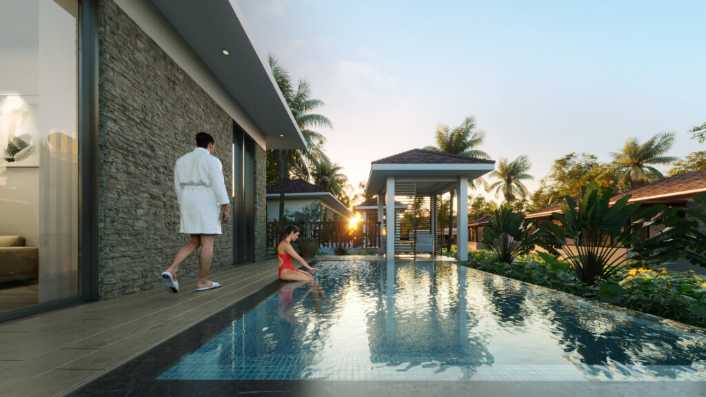 Experience tranquility in a Pool Villa, complete with a private pool and lush surroundings for a serene, luxurious getaway.